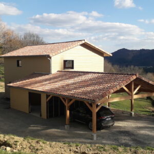 En complément de la maison : un garage de 41m², un abris de voitures de 51m² et une terrasse couverte de 50m².